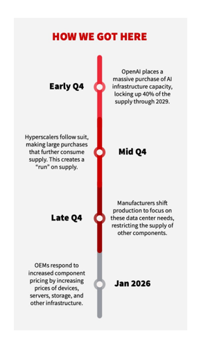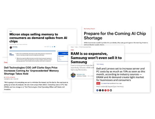 The news has been filled with the impact, from the end of consumer memory lines like Crucial to dramatic changes in ordering and commercial agreements. Three key impacts should be top of mind for anyone planning projects for the next 18-24 months.