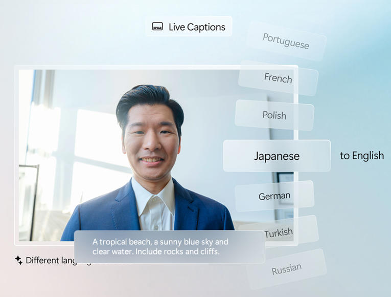 Using live captions with translation², you can understand almost any audio output from your device with real-time translation from 40+ languages into English. Â
