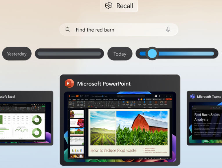 Use Recall¹ to search securely across a personal local device timeline, including apps, documents, and communications, to find and predict the most relevant content. With just a few words, describe what you are trying to find using natural language prompts.